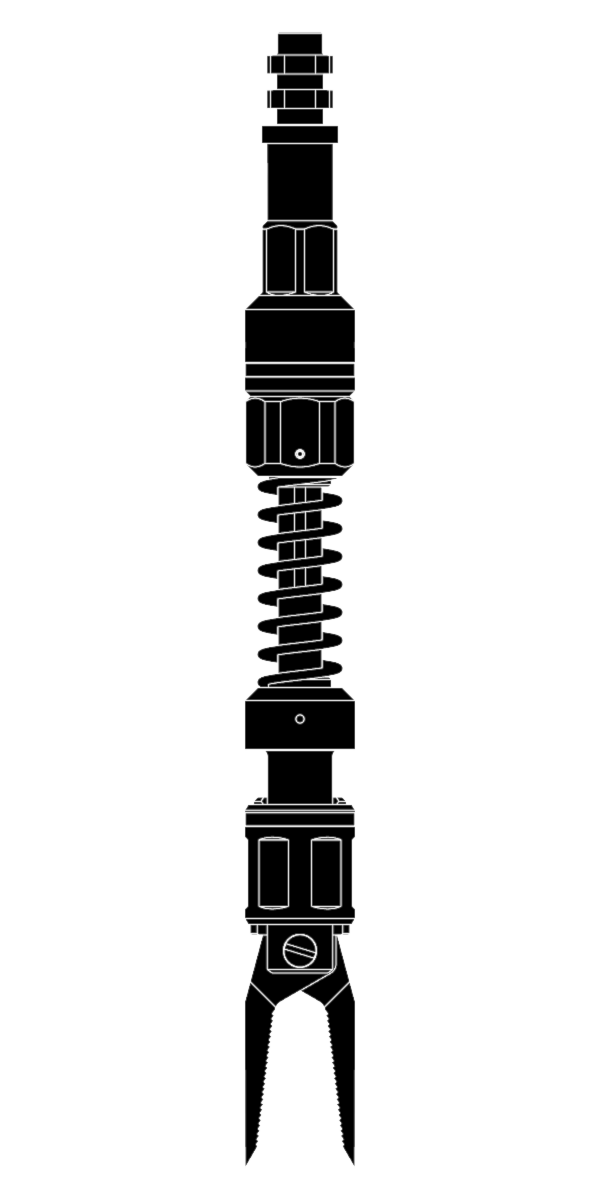 Downward jarring will shear a pin allowing the two opposing Jaws of the Alligator Grab to snap closed & clamp tightly onto any object caught between them. The Jaws of the Alligator Grab are serrated to prevent objects from slipping free once the Jaws are closed. The grip of the Alligator Grab Jaws can be varied by adjusting the spring tension prior to running in the hole.