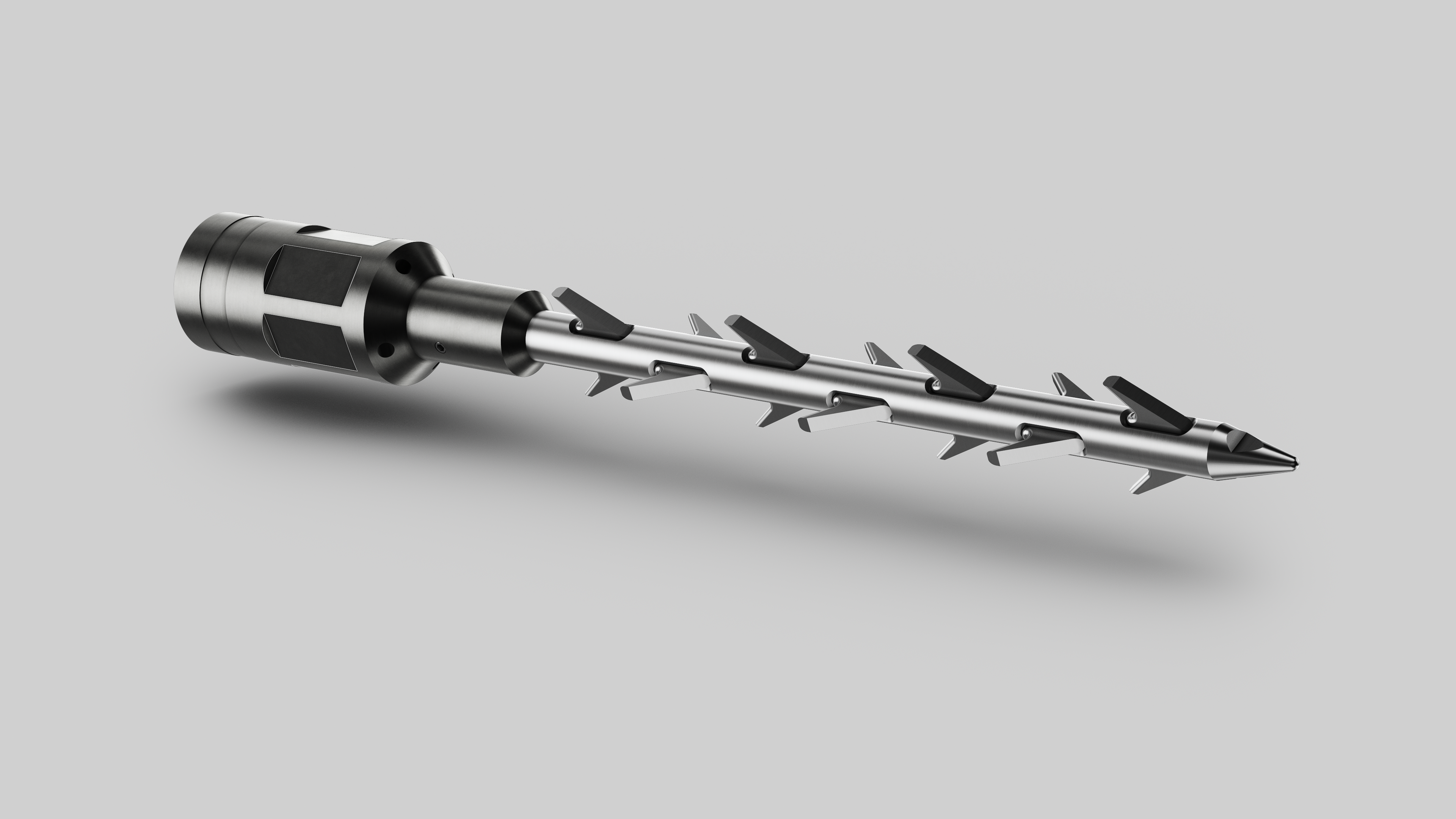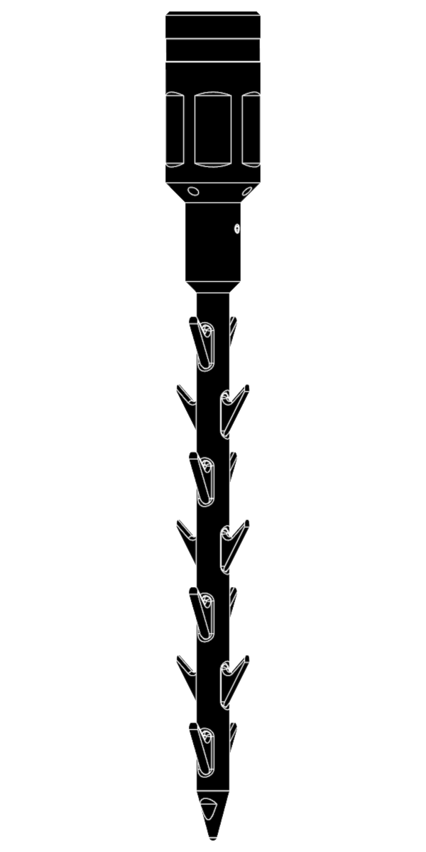 The Ported Centre Spear is generally used when a traditional wire grab has been unsuccessful. The barbs, positioned around a centre mandrel allow for a more efficient penetration into a tight ball of wire, compared to the pronged arm style of a wire grab. As the Ported Centre Spear is effectively non- releasable, it is generally run with a hydraulic disconnect arrangement directly above it to provide a release feature if the parted wire cannot be retrieved back to surface.