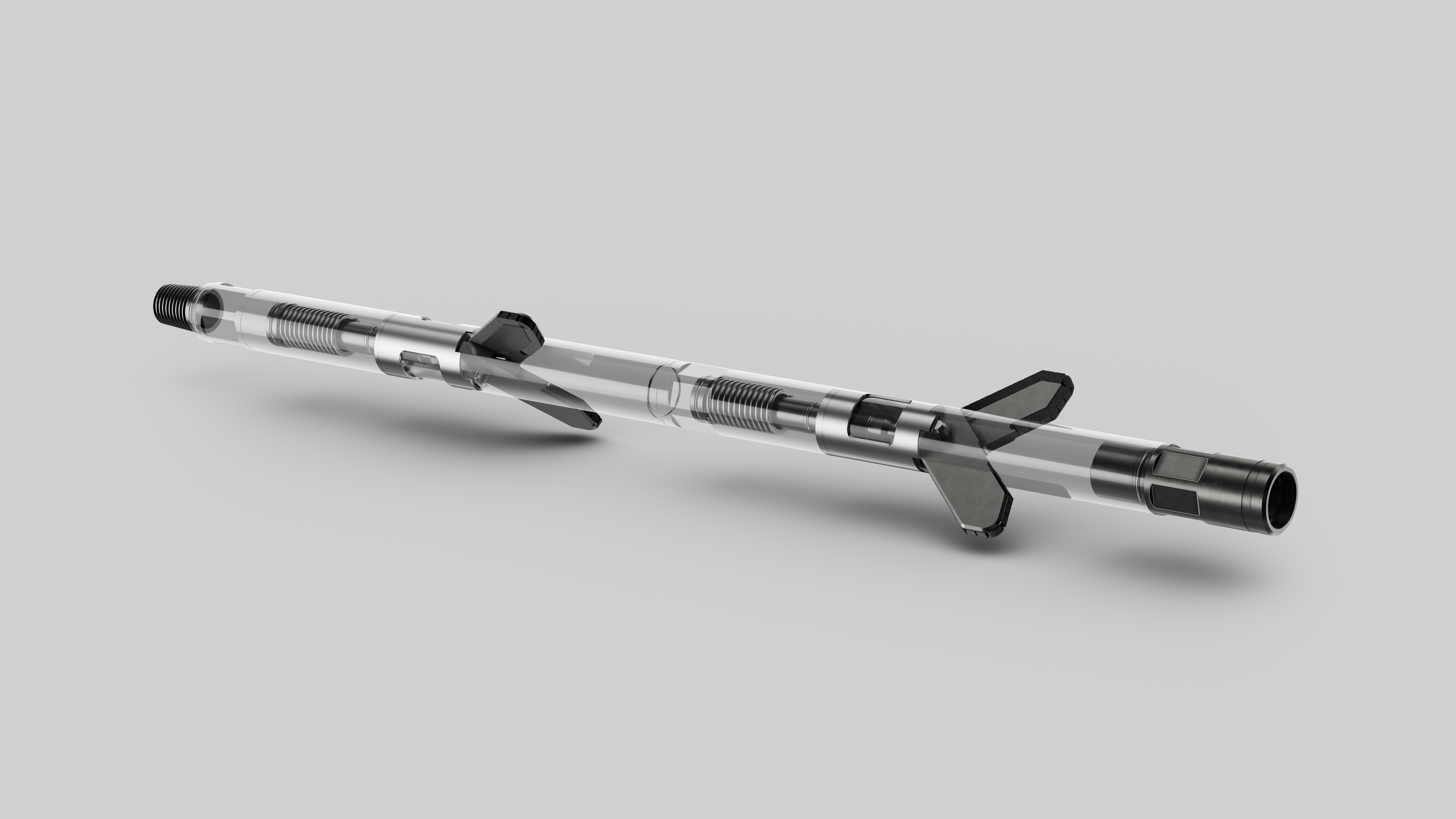 The Dual Stage High Expansion Under-Reamer features two sets of cutting blades which are activated through increased flow rate. In order to minimise torque on the reaming blades the tool can be configured with a mill below to remove initial debri and create a pilot hole, the first set of flow activated blades act as an intermediate reamer the second set of blades open to full bore to remove the remaining debris.