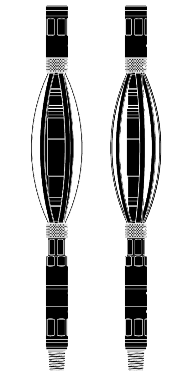 Back pressure created within a piston chamber on the central carrier mandrel will expand the arms to the required effective OD. Decreasing the pump rate / volume will allow the arms to collapse back to their original running diameter. The effective OD of the Bow Spring can be adjusted by rotating the adjustable sleeve and lock nut.